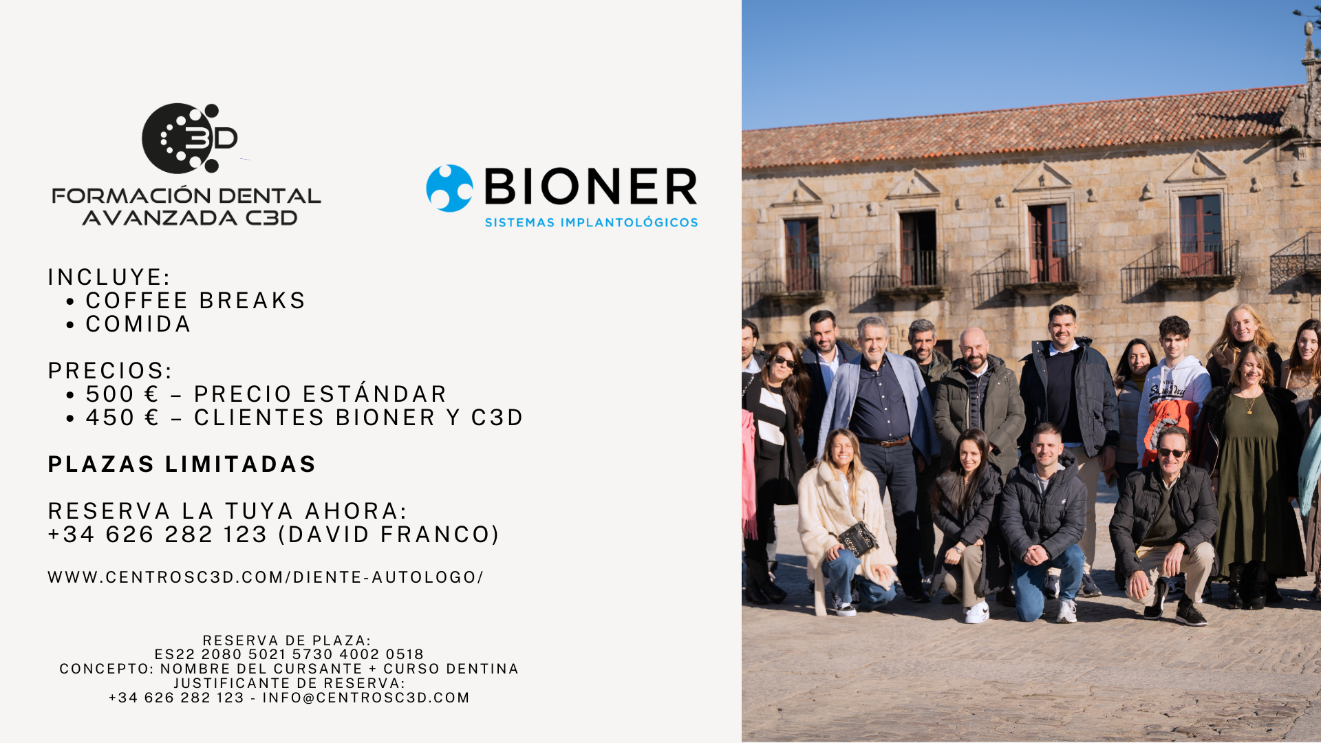 “Curso directo, claro y muy bien organizado. El concepto de dentina autóloga está explicado de forma sencilla y aplicable a la práctica diaria.”